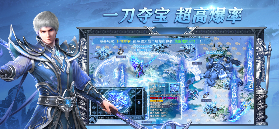 冰雪复古传奇,一款玩法不错的冰雪复古高爆传奇竞技游戏。冰雪复古传奇游戏中还有大量的副本和无门槛跨服竞技战斗等待你的加入哦。游戏可玩性不错,融入了超多的角色,快速升级转职就可以解锁新的淬炼系统,提高战斗力,分分钟安排一系列的竞技。