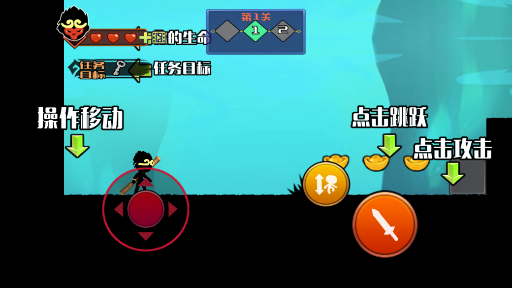 3.可以不断的跳跃让自己的小人最终到达目的地时,完成横版闯关任务