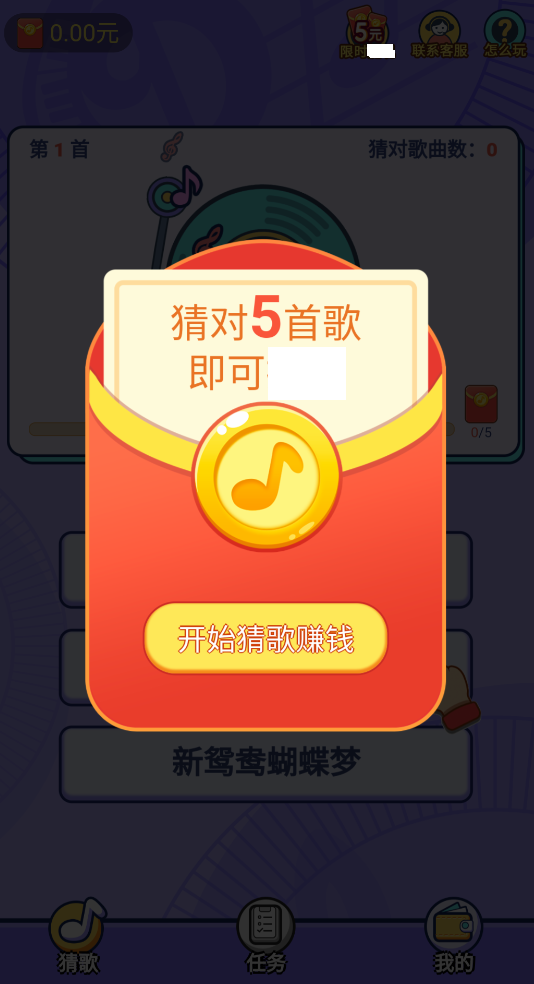 3.只要你根据关卡给出的前奏猜出正确的歌名,就可以获得奖励,成功突破关卡!