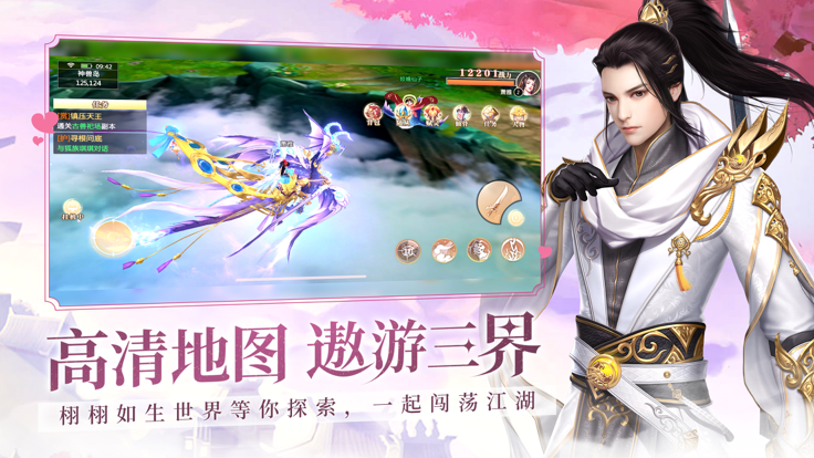1.游戏有着全新的3D引擎打造,这里的每一个场景内容都是唯美的,你将在仙域中开启奇妙的故事。