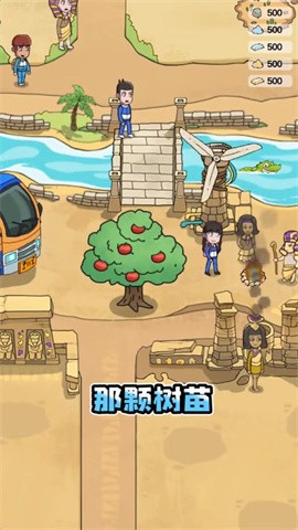 玩家被困在了史前时代,在古埃及时代中体验八九十年的时空穿梭,有个大叔一直守着苹果树,点一下大叔就可以对话了,表示他想吃大果子,玩家要想办法将果树发展成大树,得到大果子给大叔,最为报答可以给你整个农场、伐木场,这个大叔的身份既然是原始人酋长,这样下去我就可以发财了。