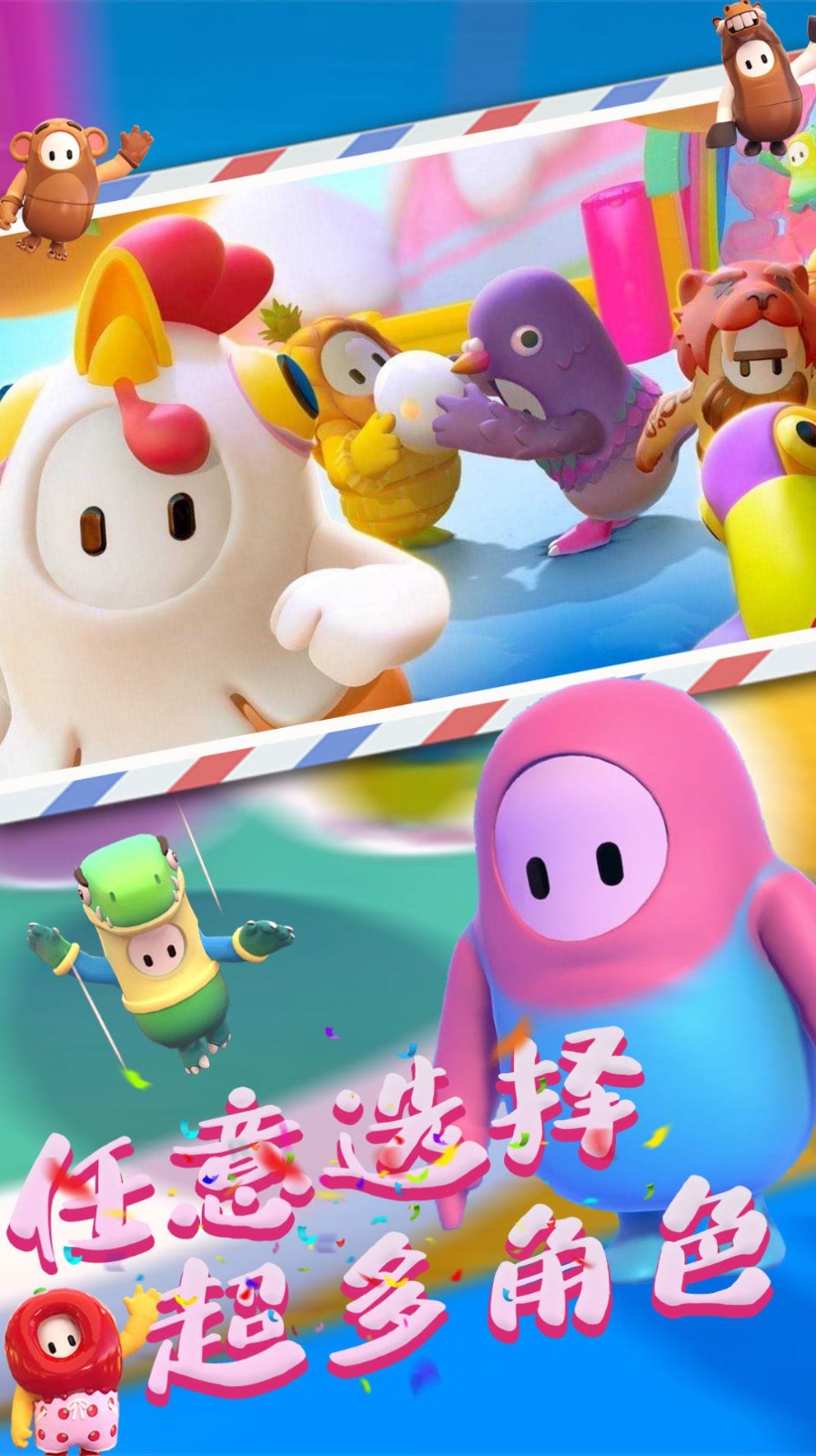 通过控制糖豆人来更好的进行竞技大比拼,在不同的场景中去自由的探索,每一个内容都会带给你全新的体验,去收集更多的糖豆人角色与你一同去冒险,还能带给你奇妙的玩法。