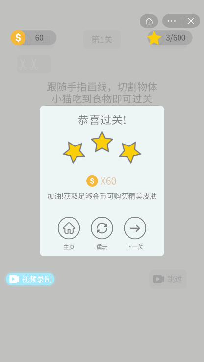 2.帮助你的猫咪去画线闯关挑战,多种多样的游戏玩法玩家可以自由的进行选择