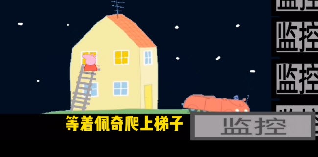 佩奇乔治都消失后乔治会在开着的门缝那里吓你,快速戴上面具乔治就走了,然后盯着外面的监控,直到佩奇上了梯子,点那个tok,佩奇也就走了,但佩奇那时候就不要戴面具了然后等右上角的数字到6就赢了。