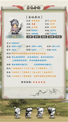通过游历积分在商店中换取神兵碎片拼装神兵。每把神兵与侠客一样,有3个技能(1个主动、2个被动。)现在在游戏中可以获得的神兵有:家传宝剑、泪痕剑配置神兵出战后可以在战斗中使用神兵的技能。