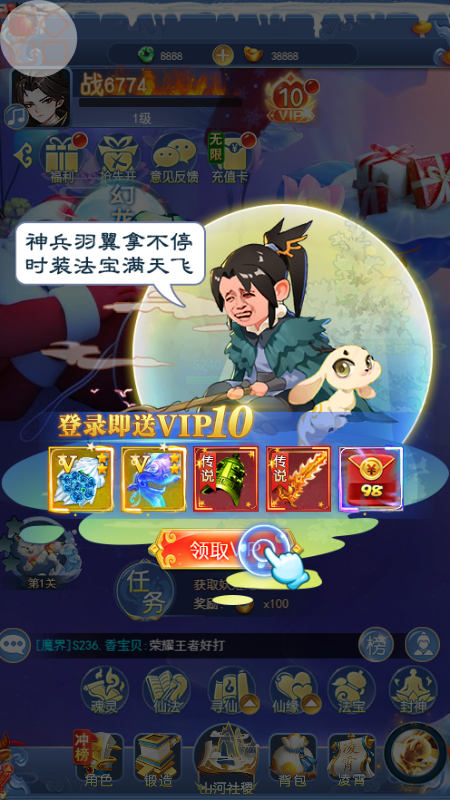 3.每天上线都可以领取海量的福利,各种元宝首次登录就可以获得