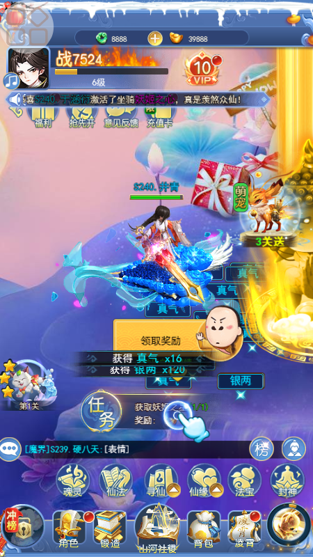 3.采用3D立体的画面制作效果搭配上良好的背景音乐,让我们耳目一新享受仙界冒险