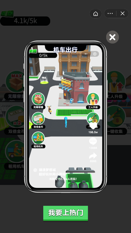 2.挂机都可以自动的获取很多收益,来帮助你扩大梦想城的范围