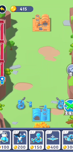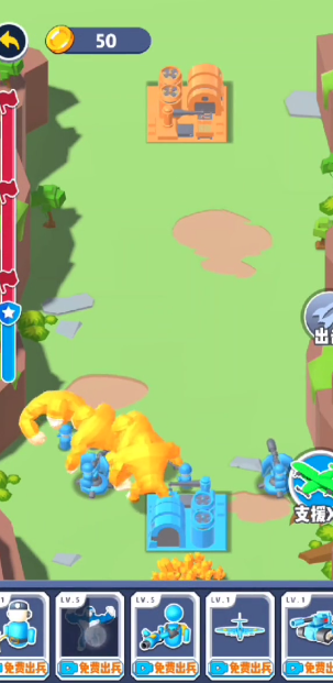 3.玩家驾驶自己升级的兵种进行闯关,合成更强大的士兵,赢得关卡胜利