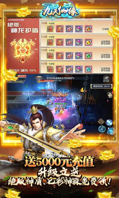 ★冲级就送5000元充值,更有进阶材料*9999、绝版神龙护盾、七彩神珠免费领!
