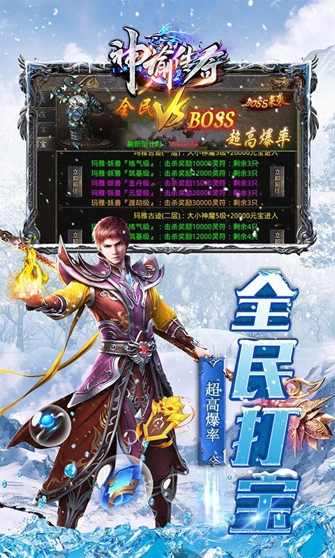 1、所有装备全靠打,怪物超高爆率,神器战装满屏爆,击杀boss就掉各种极品装备。