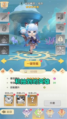 这个游戏开局可以150连抽,里面肯定有五星的英雄角色,没有结衣也会有泡面q,本体英雄和泡面q合体就能变成结衣了,在升到满级、拿着满级的结衣扫荡全场吧,,随机的地图上冒险,收集不同的宝物、让你的主角快速的升级,享受回合制的战斗乐趣吧。