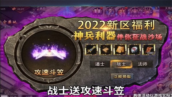 风云版蓝月风云是个2022年比较火爆的全新风云版本传奇游戏,另外新区的福利是很好的,所有的神兵利器开局就会相送,不同的职业拥有不同的武器,一起迎战沙城大陆吧,战士佩戴斗笠、法师送群体雷电书来学习、道士会得到神兽坐骑,每个职业都有相应的福利喔。