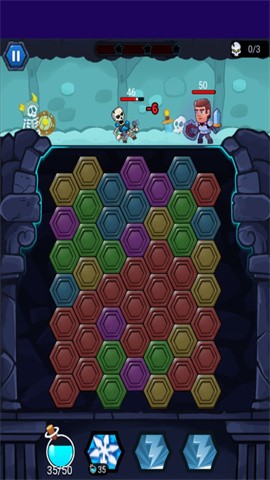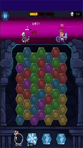 游戏里面是个联系消除并且要打怪兽的休闲游戏,在不同的震撼地牢中挑战,每一场的对决都很精彩,想办法连线更多的方块,这样你的伤害力可以提升了,不能让对面的怪物碰到你。