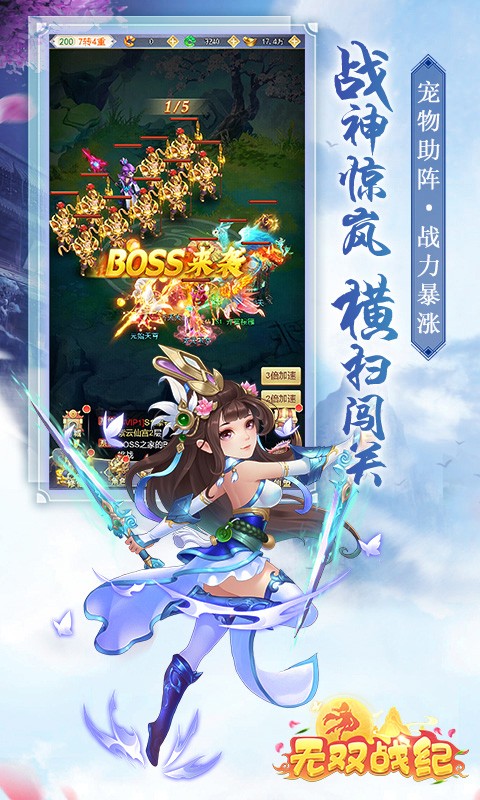 无双战纪BT版是一款Q版画风的挂机类回合制手游。玩家上线输入通用码即可领取998元卡*1、新手礼包、专属礼包、特权礼包、独家礼包。充值5倍返真充卡,体验土豪快感。超多BOSS任你挑战,仙帝之路活跃壕领仙玉。