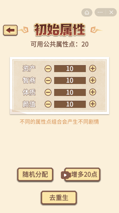 一切可重来是一款重生人生玩法的模拟游戏,面对危险的时候也要做好充分的准备,选择正确的选项完成新挑战任务帮助角色们冒险,一切可重来小游戏完成了任务以后,大家就能够在这里进行各种各样的冒险,在游戏界面还可以锻炼属性开始更多的冒险故事和新关卡