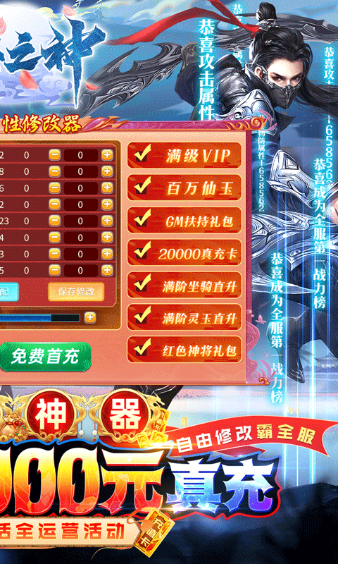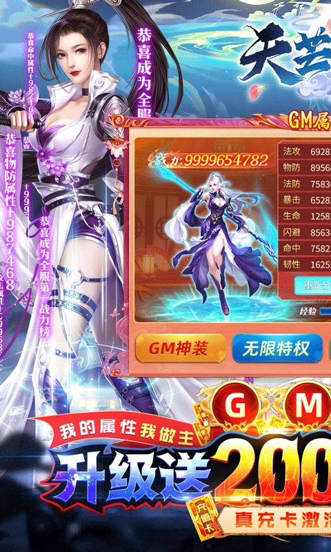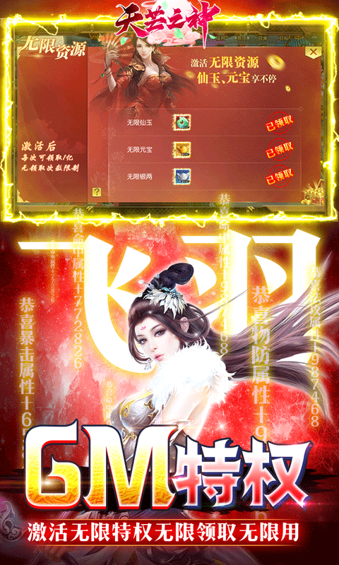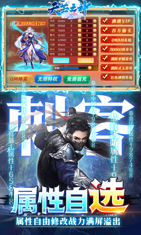 天芒之神满V版是一款超多福利的仙侠RPG手游。玩家上线即送GM属性修改器、满级VIP、GM扶持礼包,让你战力满屏溢出。在线领取海量坐骑直升丹,升级累计领取20000元真充卡,活跃再送满级灵玉。免费成为仙权GM,激活仙权特权,每日领仙权专属礼包!