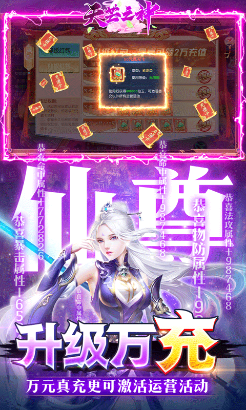 2、利用装备技能、坐骑萌宠、极品仙器、品阶升级等方式,让你战力飙升。