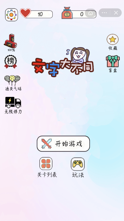 文字大不同是一款全新益智烧脑玩法的文字闯关游戏,游戏中每个关卡都有不同的错别字,找到关卡中的错别字就可以完成挑战,文字大不同游戏中各种文字谜题非常考验玩家们的知识储备能力,选择正确的道具去完成冒险后就可以获得最新的道具奖励,卡通简洁的界面让每个玩家都可以体验到游戏的快乐