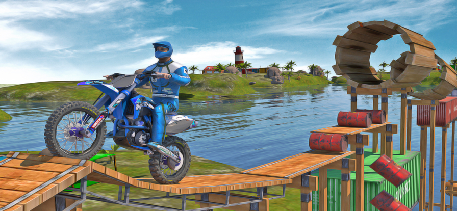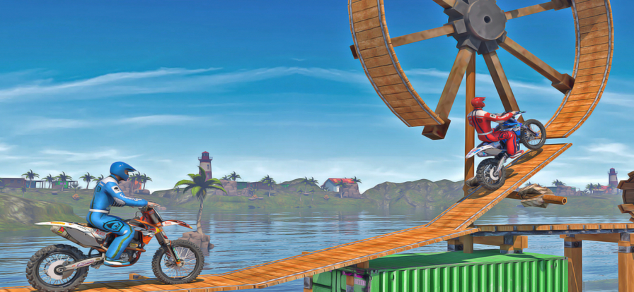 一款自由动作的刺激赛车游戏,有疯狂的特技和自行车赛特效。这个游戏有很多越野模式。在这里,你可以体验到很多气轨游戏,很多操作技巧,气轨减压的挑战,还有很多考验你操作游戏的模式。特技摩托赛有很多地图,还有很多自行车等着你去解锁。