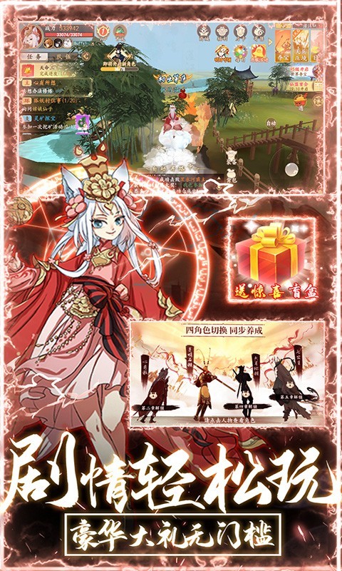 1、游戏中以四大主角为了保护种族而对抗天庭,开启降服各路妖灵神怪的奇幻之旅。