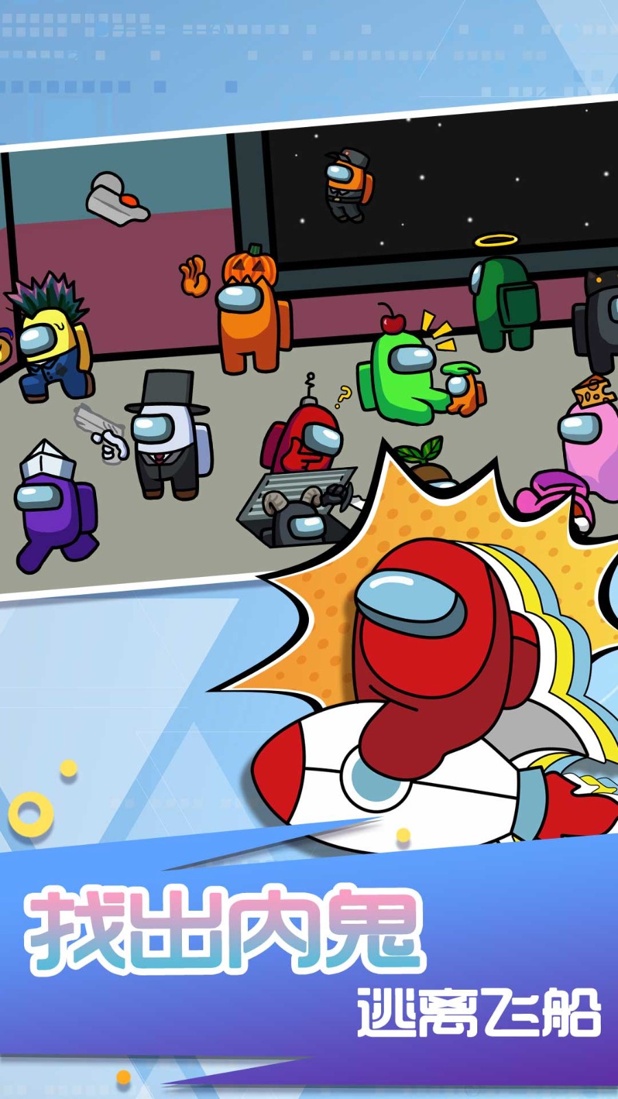 1.游戏的过程中玩家将要乘坐飞船进行找内鬼挑战,你需要跟更多出现的狼人内鬼进行对抗