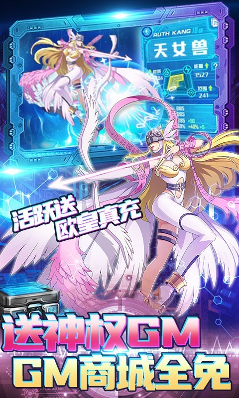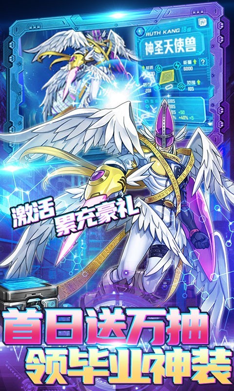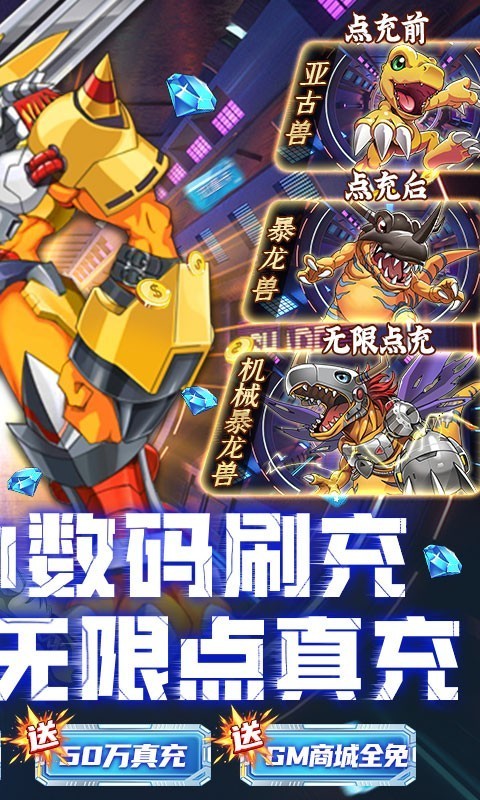2.登录三选一主宠数码兽【亚古兽,巴鲁兽,巴达兽】,创角还送加布兽