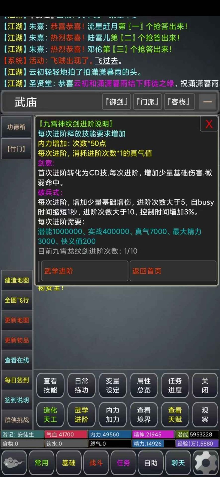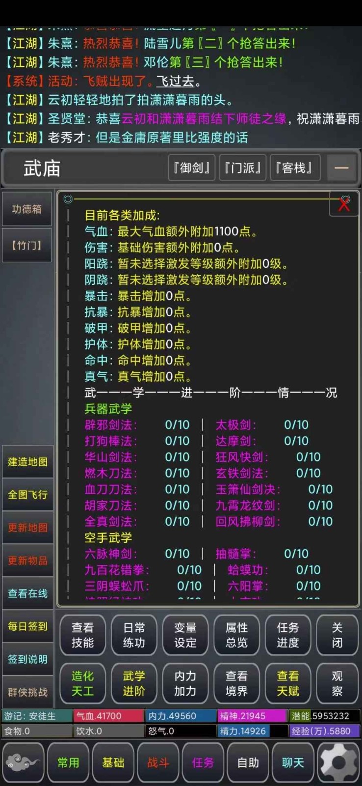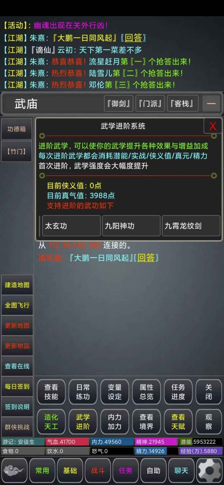 1、全新的文字冒险,这里用文字打造一个庞大的武侠世界。
