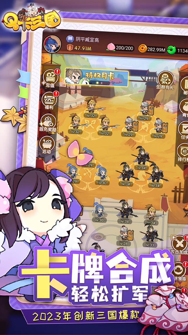 Q卡三国是一款三国题材的动作冒险策略养成类手游。游戏中玩家将需要招募三国名将来进行战斗,进行排兵布阵来战斗,从而获取资源提升战力,最终一同三国。