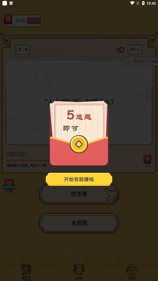 成语答题达人红包版是一款休闲烧脑挑战手机游戏,在成语答题达人红包版内展开各项挑战,丰富的游戏玩法模式,不断的参与到我们的挑战,完成我们的考验,领取我们丰厚的游戏红包奖励,赚取我们的更多奖金,刺激对决一触即发,体验精彩所在地!