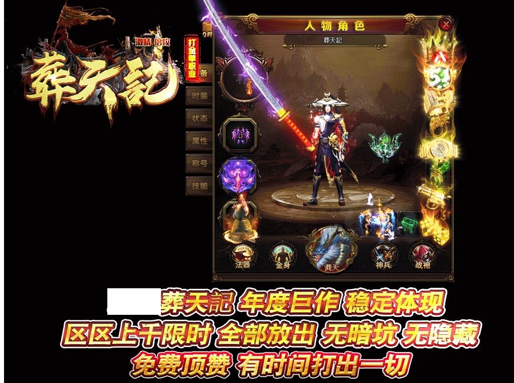 葬天纪单职业是一款精品制作的传奇角色战斗手游,葬天纪单职业游戏你必须先升级。只有当你升级,你才能有更多的玩法和乐趣。有一些活动可以每天刷新。你可以随意来玩。各种杀死老板的活动有丰厚的回报!召集好兄弟一起战斗。有着不同的青春和激情时期。用鲜血和自由战斗。与合作伙伴在线PK。