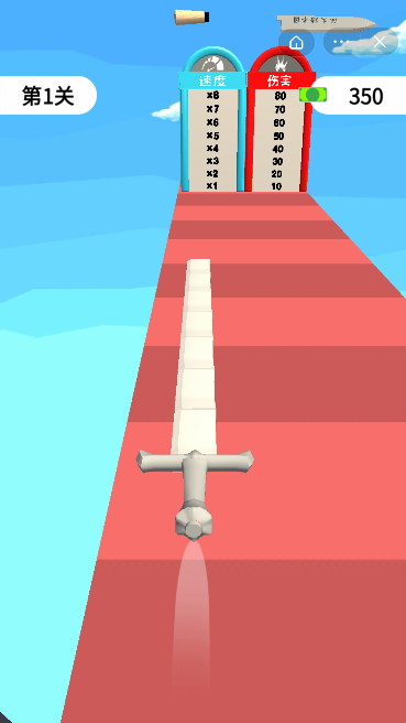 1.玩家朋友们可以选择自己想要的飞剑,在不同跑道上撞毁障碍物,并领取丰厚的奖励和武器