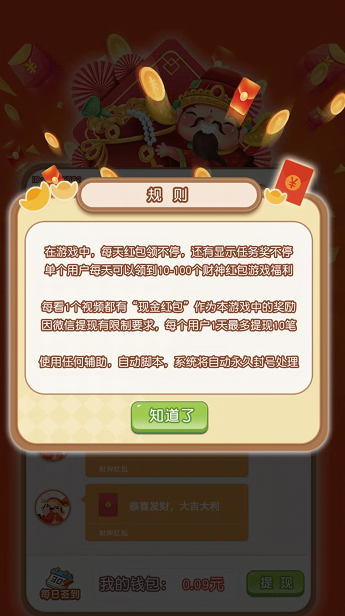 3、财神升级获利,一大堆任务,一个红包一个礼物带回家!