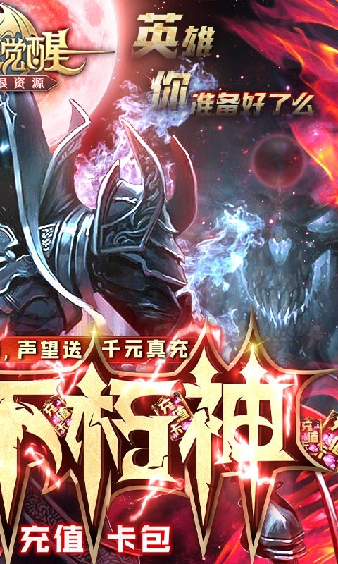 暗黑觉醒无限版是一款全新无限资源版本的3DMMORPG魔幻手游。玩家上线送1272元的充值卡,开放无限资源-金手指,参与活动、副本即可轻松激活。打剧情副本、做每日目标任务能领合集超过千元的真充卡!