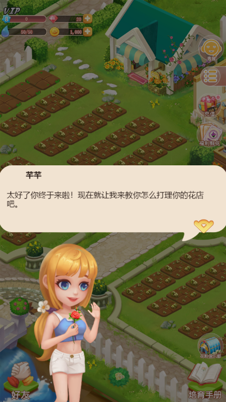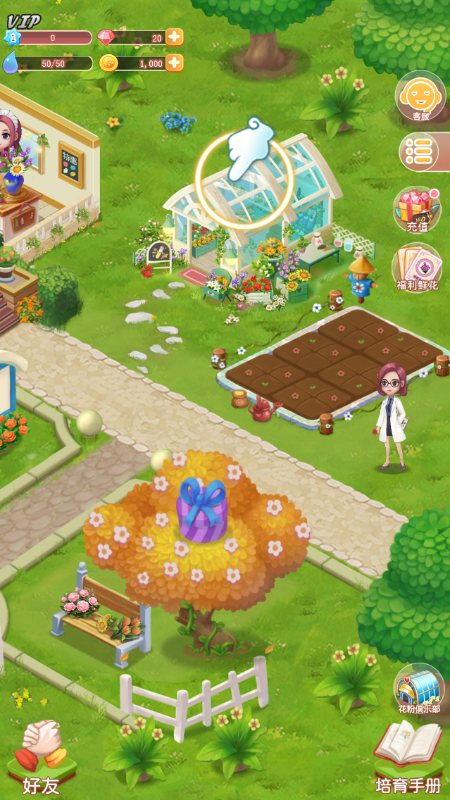 2.各种花店经营玩法,可以操控着自己的卡通角色自由的探索在地图场景中的各个区域