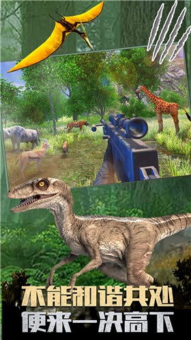 1、在恐龙生活世界模拟游戏中举起你的枪,直视目标,瞄准目标,不断磨练自己的技能,创造出完美的狩猎路线。