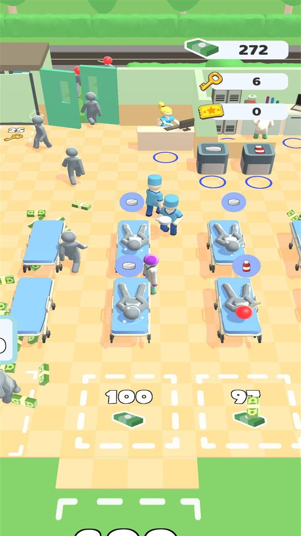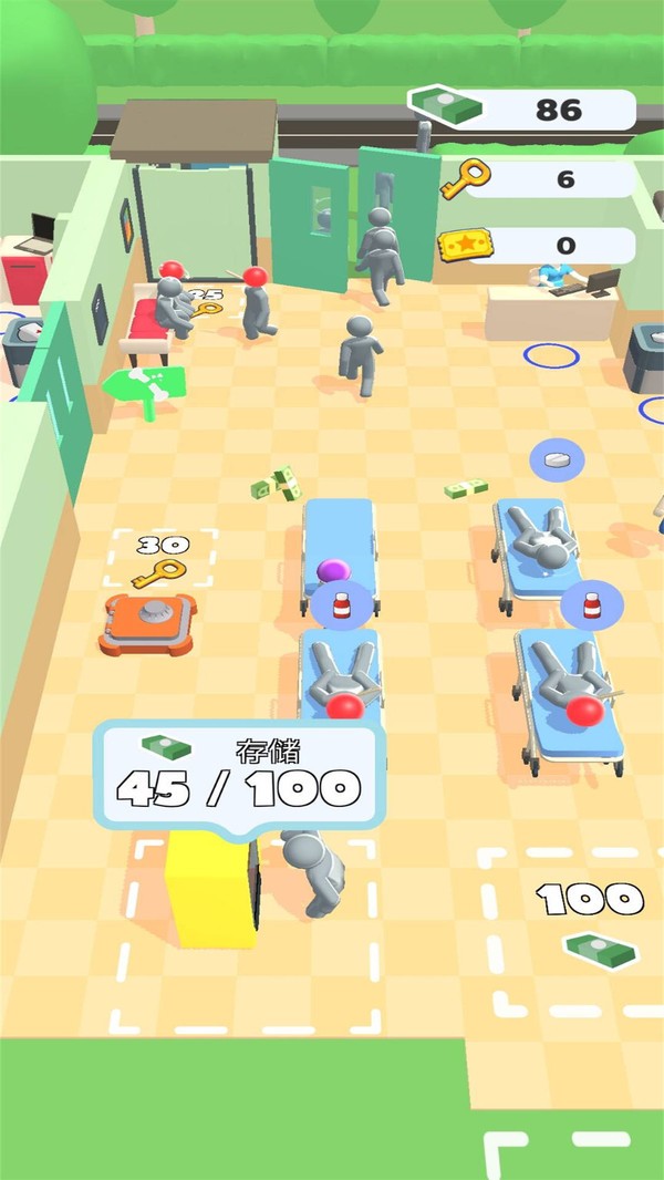 2.收集到足够的材料,在每一寸土地中治疗各种病人,可以升级我们的医院等级和各种建筑