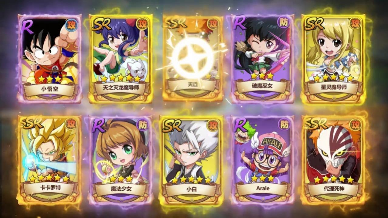 1.游戏中有着熟悉的动漫角色,每一个人物都有着强大的属性技能,你可以去自由的组队进行竞技。
