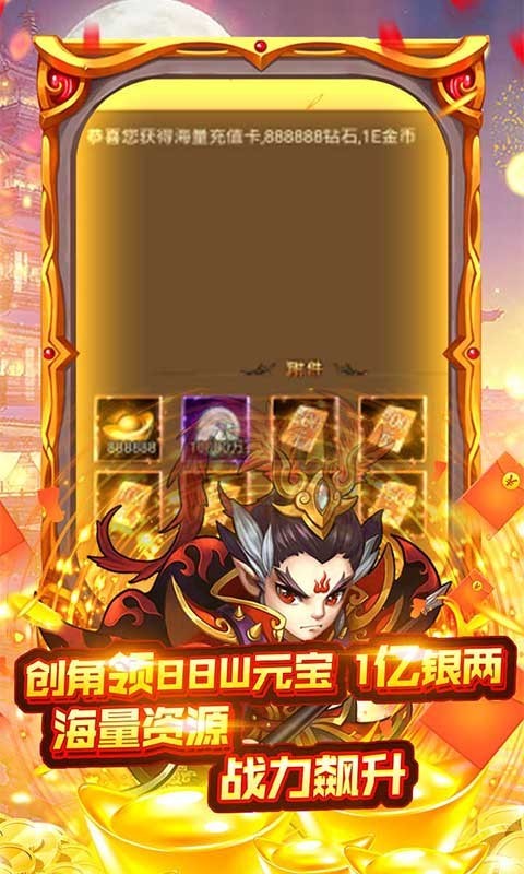 挂机吧三国官方版是一款以三国时代为背景的放置养成游戏大作。玩家创角领88W元宝、1亿银币,上线送15000元充值卡,让你白嫖也能嗨翻天。闯关无限送充值卡,VIP奖励免费领;首充送无级别红装、限定绝版武器外观。内置VIP超级商城,限定礼包一元购,海量资源道具随便购。