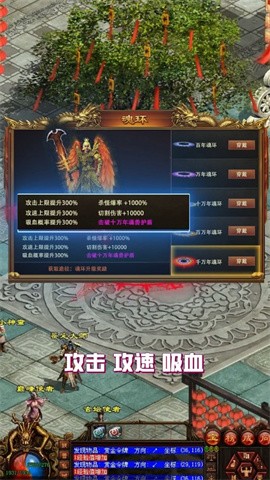 这是我玩过最爽的一款传世手游,升级可以获得终极魂环的版本,不需要任何条件、可以随意的进入高爆地图,达到等级就可以拥有还魂系统了,还有大量的装备赠送、元宝、灵符可以随意的获得,提高300%的攻速额外还有暴击、吸血特性等等。