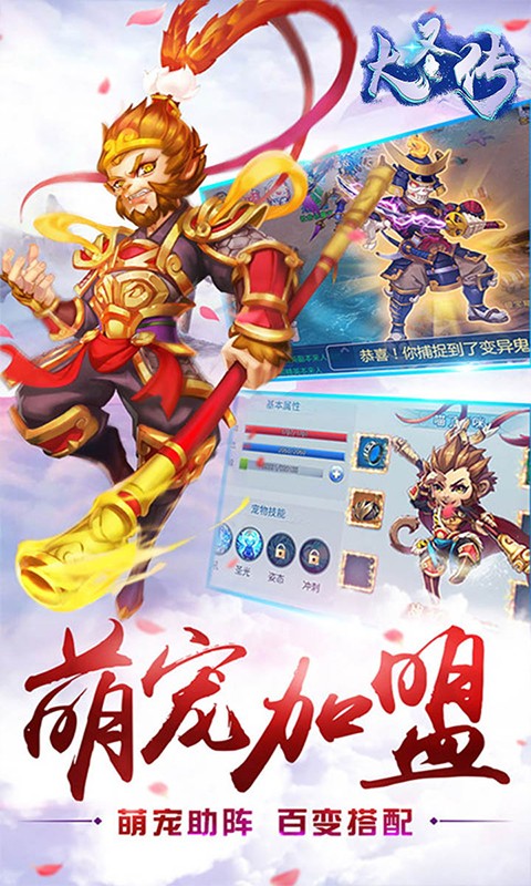 大圣传安卓版是一款以古代神话题材为背景的回合制手机游戏。玩家登录即送VIP5、3888元宝、50万金币、仙宠八戒、绝版称号、无级别武器。你将在游戏中控制你的角色来完成不同的挑战,精彩有趣的剧情内容,游戏操作简单易上手,海量的福利可以领取,让你每天都有不同的极致体验!感兴趣的快来下载吧!
