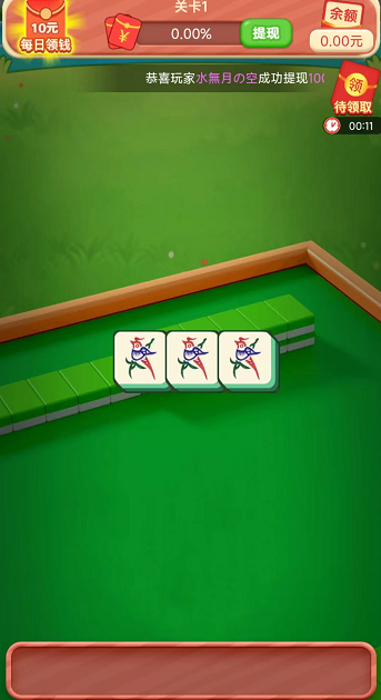 第三次挑战拿红包,淘汰大师等你,随机麻将图案方块等你加入判断进行消除,放置三个相同的图案进行单个消除,只有消除表面方块,才能一步步消除所有已完成的冒险,挑战拿红包,淘汰高手等你!