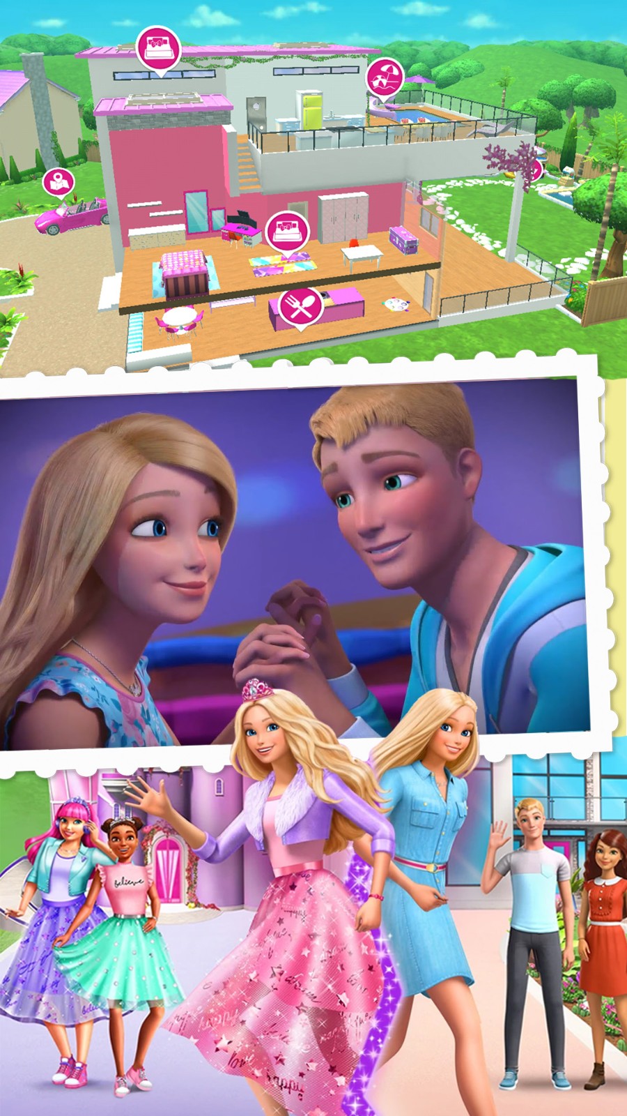 芭比闺蜜家是一款卡通换装休闲游戏,领略不同的人物风格以及独特的梦幻换装情节发展,带来趣味的冒险故事以及休闲的活动玩法,芭比闺蜜家游戏带玩家融入神秘的夏日派对世界,展现趣味的模拟玩法以及休闲的操作过程,玩家能够了解不同的人物故事和人物背景,也能参与趣味的角色互动过程,享受休闲的游戏活动以及独特的探索挑战