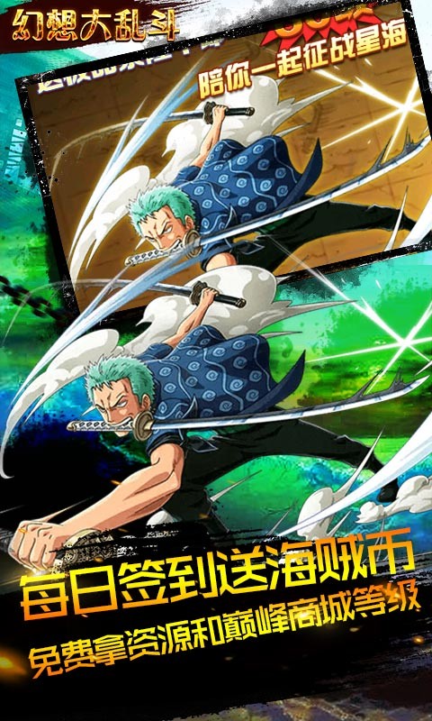 幻想大乱斗GM版是一款二次元动漫题材的卡牌回合制手游。玩家上线就送至尊V、千万钻石、金币、私人定制称号和上阵卡牌。登录就送千元真充卡,每日签到送海贼币,免费拿资源和巅峰商城等级。在线送充值卡,完成每日任务可领超值资源道具及海贼币。喜欢这类游戏的朋友们快来下载吧!