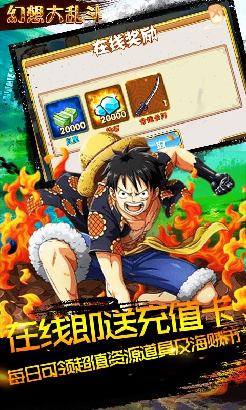4、在线送充值卡,完成每日任务可领超值资源道具及海贼币。