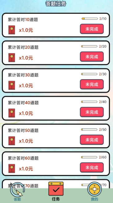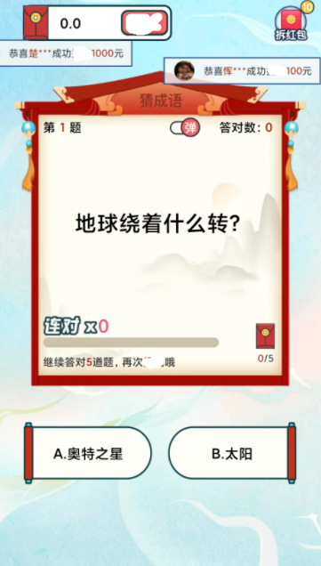 成语答题,完成就有红包。