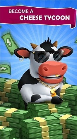 在游戏中生产尽可能多的养殖奶牛,制作奶酪,然后雇佣一个经理来提高你的奶酪销量。这些奶牛是主要的生产力量,制造奶酪并卖给世界各地的顾客。在游戏中,玩家可以通过不断点击屏幕来繁殖很多奶牛,制作很多奶酪。