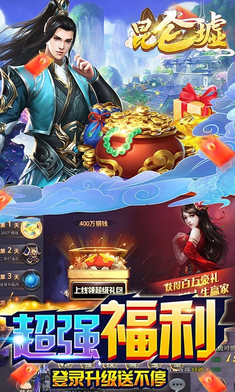 昆仑墟2022是一款东方玄幻题材的动作角色扮演类游戏。上线即送满级VIP18,无限充值回收兑换豪礼。更有西域少女、绝版称号、专属武器、炫酷坐骑可以获得。喜欢这类游戏的朋友们快来下载吧!