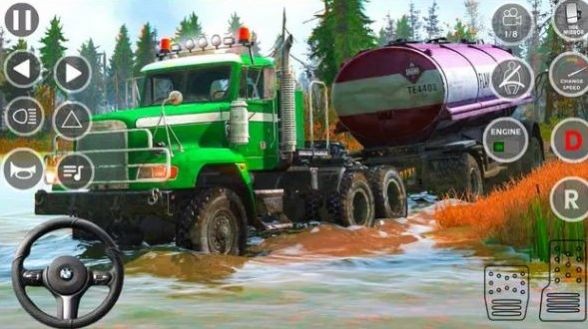 2.开着卡车,完成更多的游戏任务,更多的游戏道具可以解锁的,在惊险的越野泥泞环境中穿越泥泞和河流;