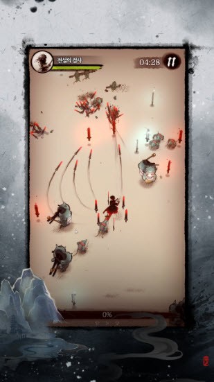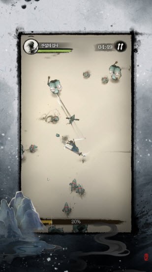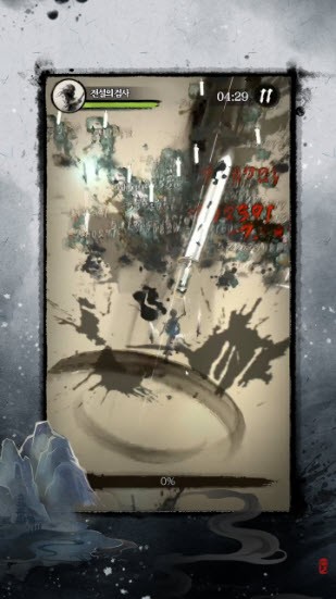 1.水墨风格的画面,随着齐控制的剑,无数的剑被发射出去横扫周围的怪物。